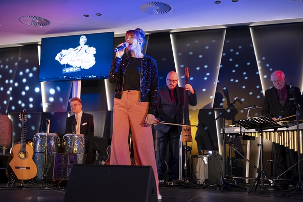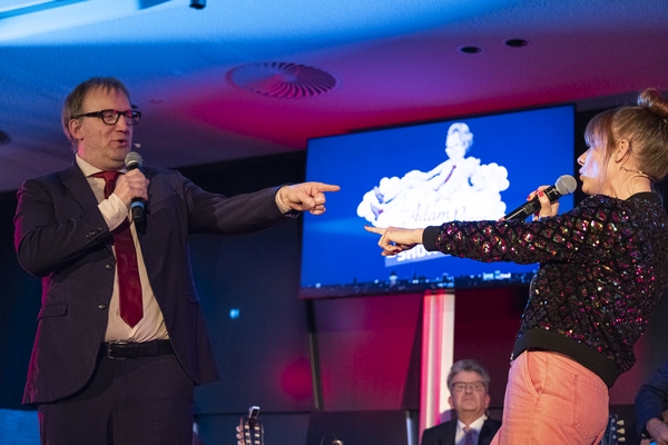 Alles Münster schrob: „Schmissiger Höhepunkt und gleichzeitig auch der musikalische Abschluss der Show war aber, als Reinhold Beckmann mit Corinna Bilke mit viel Verve die Antwort auf Chris Norman and Suzi Quatro gab und mit ihr „Stumblin‘ In“ sang.“ FFoto: Thomas Steiner