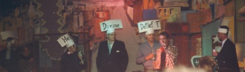Reini Sander als Steffi Graf, Karla Kofferath als Heidi, Schwein als Divine, Ossi Münnig als Möppel, Moderator Henk Hakker und Adrian Jefferey als Prinz Charles.