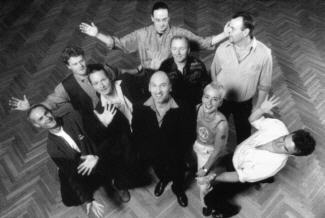 ![]() Lou Canova. 1999. Auf dem Bild: Marko Adam (Gesang, Percussion), Rosa Latour (Gesang, Saxophon), Christoph Schaaf (Keyboards), Jürgen Arrenberg (Gitarre), Matthias Wittler (Saxophon), Matthias Kurzhals (Saxophon), Matthias Klotz (Trompete), Michael Kranzioch (Bass) und Eddie Lewald (Schlagzeug). |