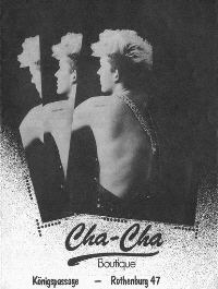 Was wäre das Münster der 80er Jahre ohne dieses Kleinod ausgefallener Musik und Kleidung gewesen! Unter Teenie-Mädchen galt es als schick zwischen Poppostern eine Tragetasche von Cha Cha übers Bett zu hängen. Unvergessen sind die Livekonzerte von Bands wie Ace Cats oder Sentimental Pounders im eher kleinen Verkaufsraum der Schallplattenabteilung. Diese war in der ersten Etage der Rothenburg 47 links, rechter Hand fand man die Boutique. Die Tonträger wechselten Mitte der 80er ein paar Häuser weiter, ebenfalls in die Belle Etage. Die Boutique zog in die Königspassage.