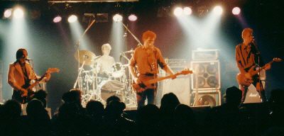 ![]() Lonely Boys. 1989 live im Jovel. Von links nach rechts: Carsten Krystofiak (Gitarre), Gregor K. (Schlagzeug), Volker Klatt (Bass & Gesang) und Bernd Rengers (Gitarre).