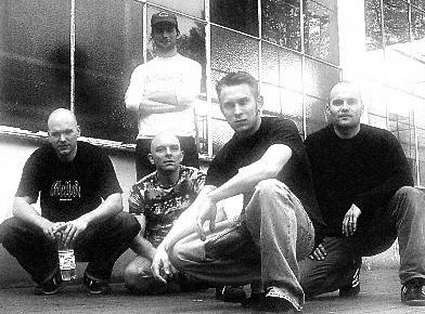![]() Marones. 2001. Von links nach rechts: André Meyer (Bass), Ronald Hofhüser (Schlagzeug), Joe Marone [stehend] (Gesang), Philipp Kopp (Gitarre) und Beli (Gitarre). |