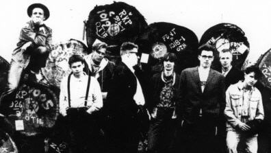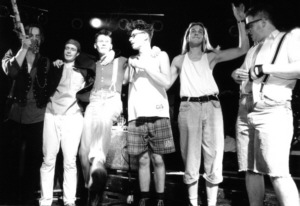 ![]() El Bosso & die Ping Pongs. 1989. Von links nach rechts: Skacus (Gitarre), Ulli Wessel (Trompete), Steve Eickmeyer (Schlagzeug), Richie Jung (Posaune), Georg Maas (Gitarre), El Bosso (Gesang), Frank Schönert (Bass) und Chribo (Saxophon). |