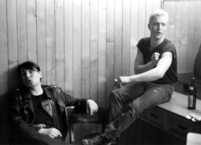 ![]() Sid Bee Game. 1986 in Bern. Backstage. Zezo van Dam (Gesang) und Henk Hakker (Schlagzeug). |