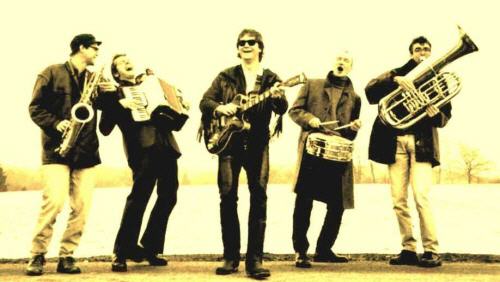 ![]() Walking Blues Prophets. 1996. Von links nach rechts: Manfred Wex (Saxophon), Wolfgang Proppe (Akkordeon), Ronald Lechtenberg (Gitarre), Jochen Welle (Schlagzeug) und Stefan Schulze (Tuba). |